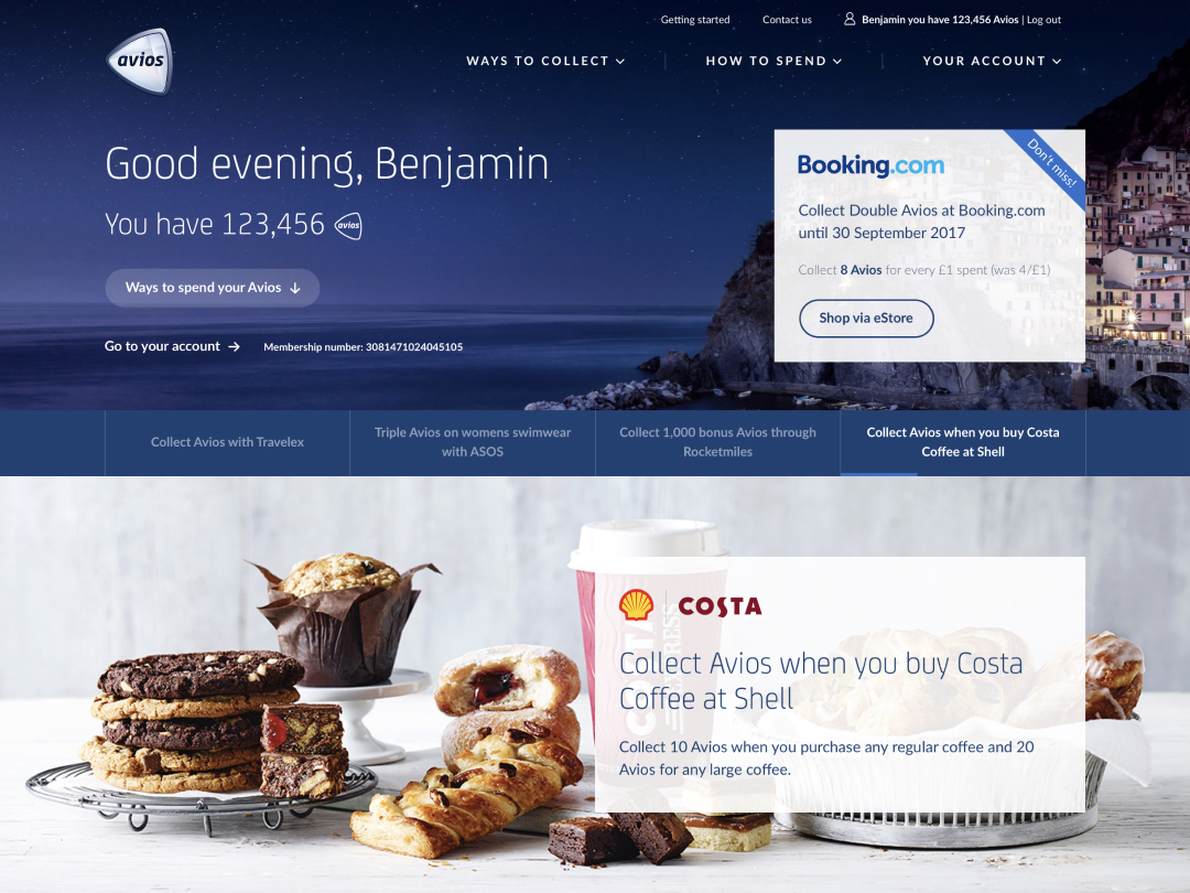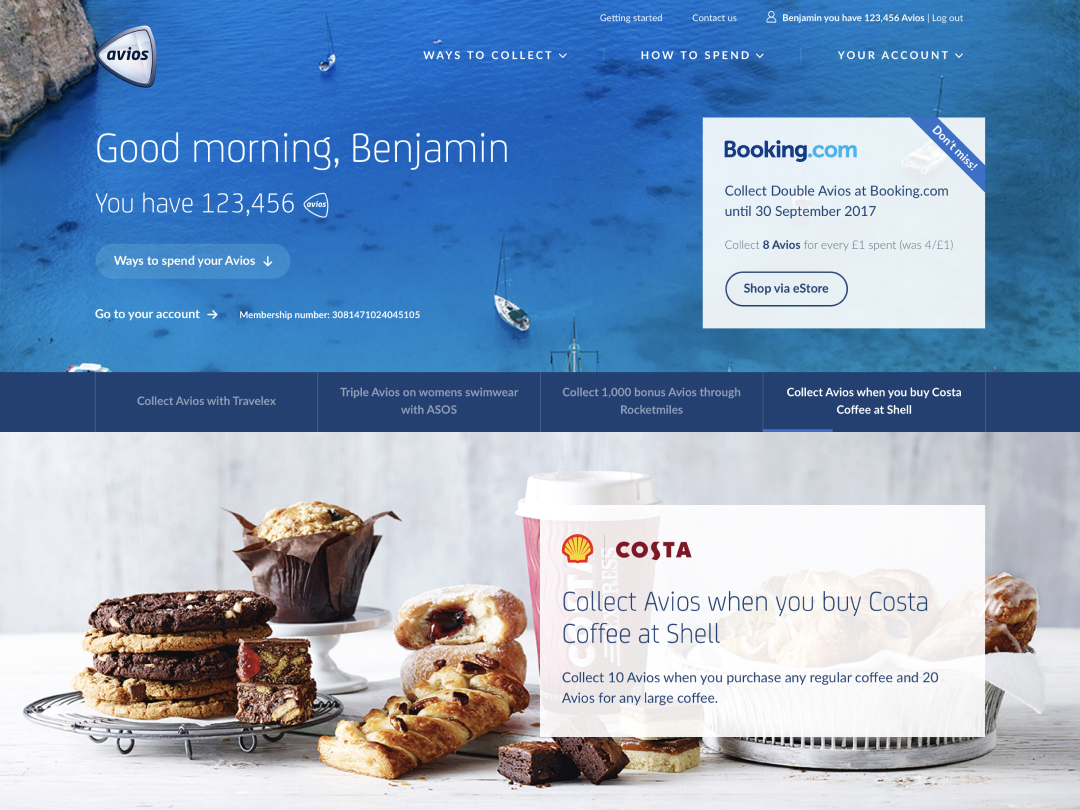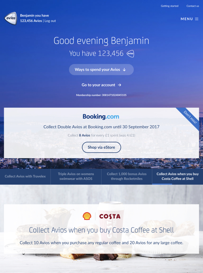 For logged-in members, we go on to introduce personal account information - such as balance, membership number and balanced based redemption opportunities.