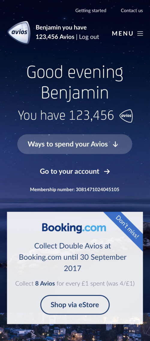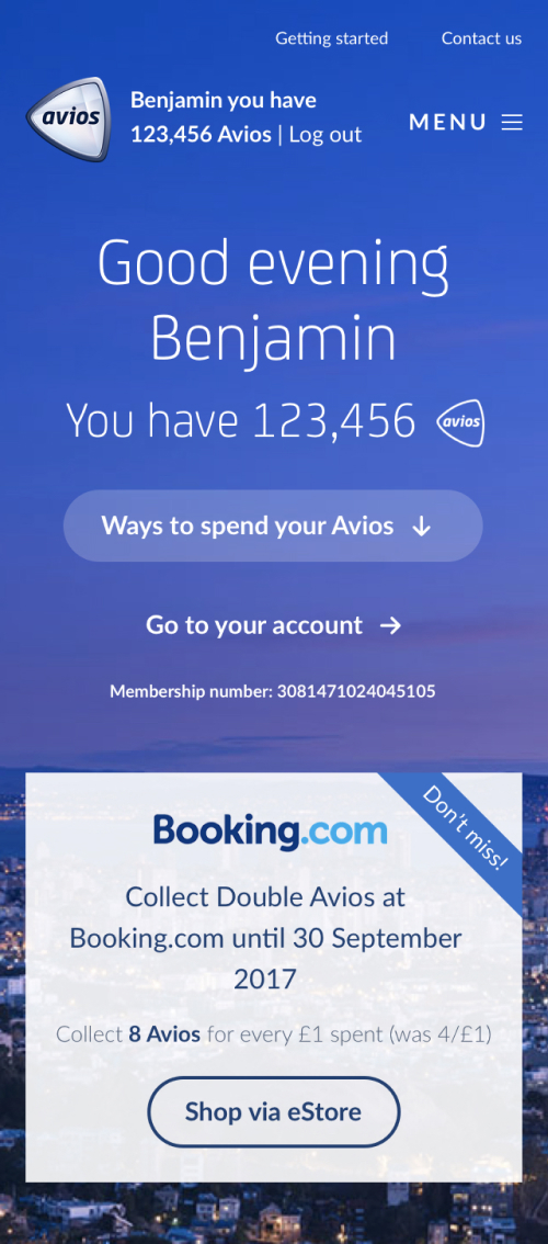 To give Avios members a warm and inspiring welcome to the website, we introduced a hero banner to the top of the homepage that greets you with a message and destination background relevant to your local time of day.