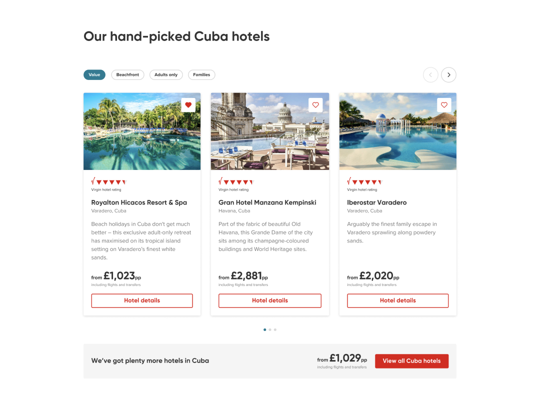 We’ve run numerous design and content sprints to better understand what our customers are looking for in a destination and what the deciding factors are. The insight we’ve gained through these sessions, paired with what we’ve learnt from live data and feedback has helped us to refine these pages to their latest iteration (v3.1).