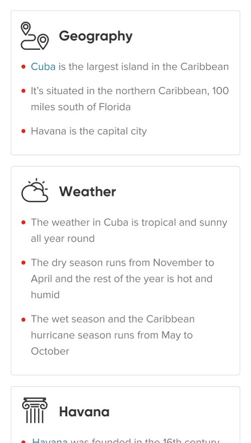 Since February 2019, we’ve been focussing on the make-up of our destination landing pages – tailoring them to include key information that prospective holidaymakers need before booking their dream trip.