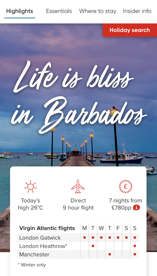Mid 2019, I joined the Virgin Holidays browse product team on their journey to enhance the pre-booking experience for customers. Here’s a brief overview of what we’ve been up to in that time.