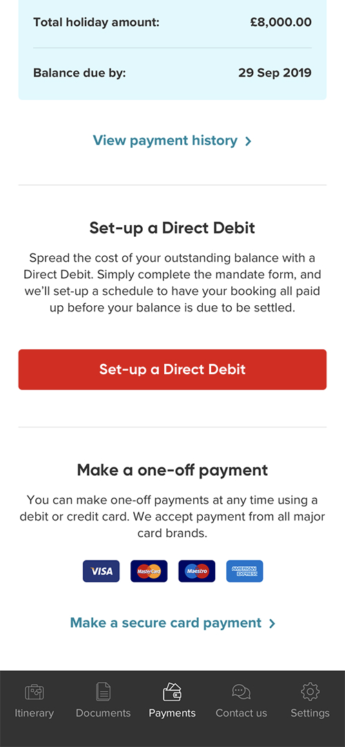Our research showed us that Direct Debit (DD) was a preferred payment method, as it allowed customers to spread the cost of their holiday between booking and their final payment date.