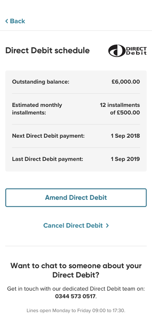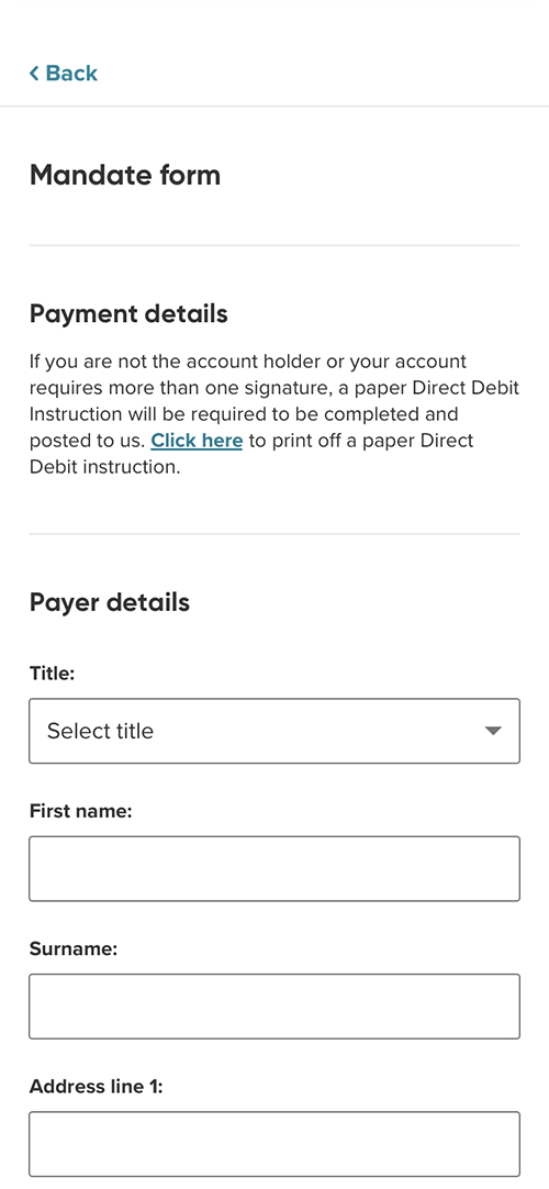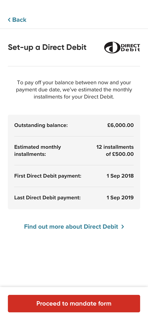 Based on what was achievable with the service providers API, I mapped out the user flow for customers setting up a new DD and managing an existing one. I then moved onto designing the front-end UI, including all scenarios and states, which were then validated through a couple of rounds of basic usability testing.